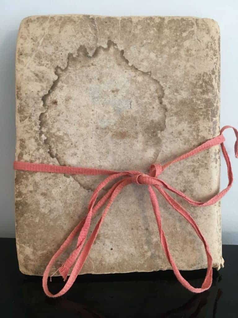 3) It’s charming: Wrapped in old paper boards and with a 19th century (or earlier) string holding the loose signatures together, it certainly has some vintage charm and visual appeal.