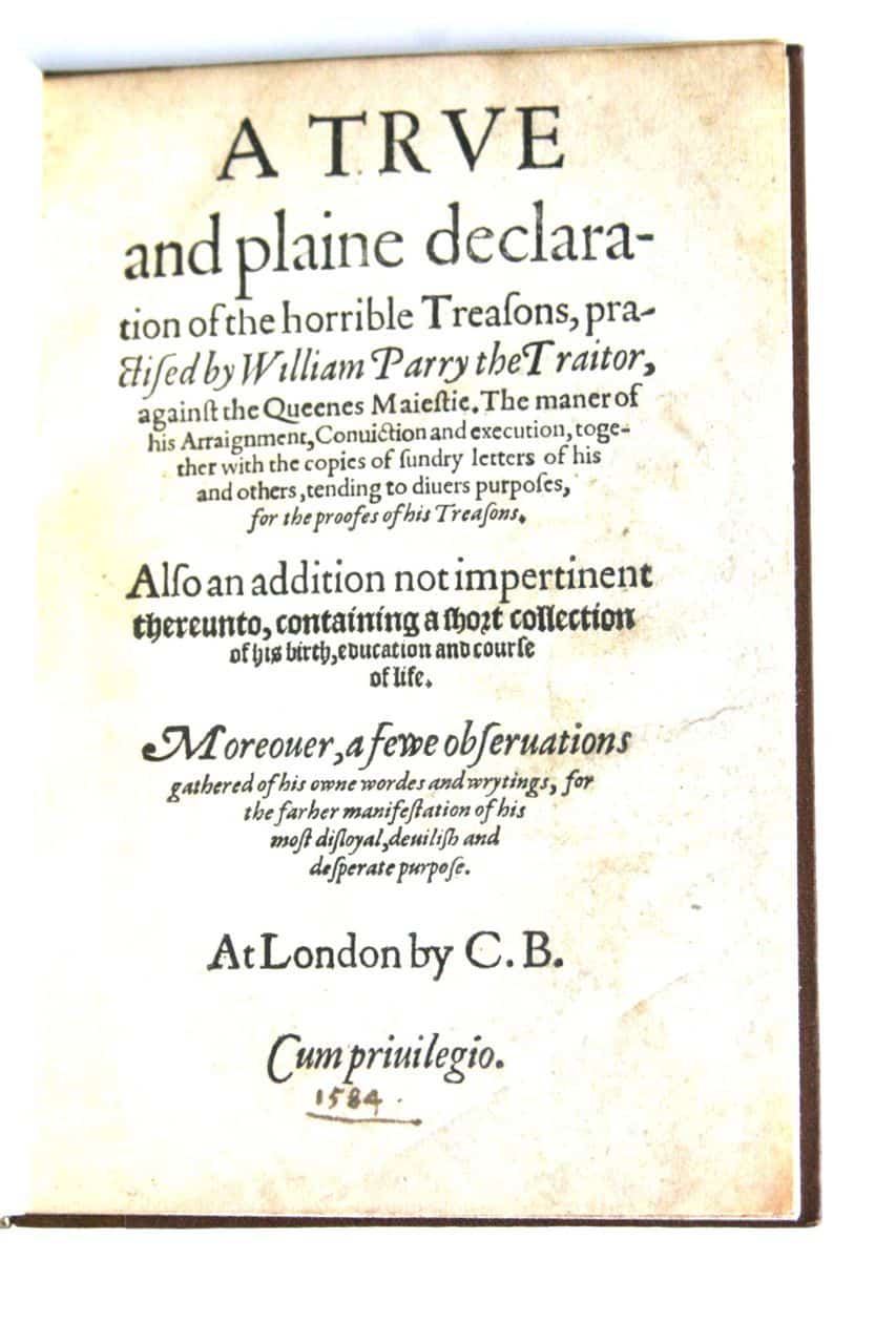 PRINTED 1584: WILLIAM PARRY – THE REMARKABLE DOCTOR AND DOUBLE-AGENT