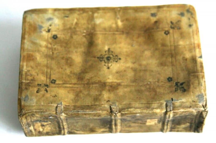 It is interesting to note that the Williams catalog calls attention to a “Fish-skin” binding. While there have been fish-skin bindings, this more probably refers to the slightly unusual fish-skin styled grain of the morocco as in the present example. There is some supposition that the edition is in fact a counterfeit one, made in Holland for the English market, but this appears inconclusive. Additionally some references point out without clear proof, that the Pearl Bible was intended for the Commonwealth Army and Navy as a pocket Bible and that it was the only Bible printed under Cromwell’s clear order for such distribution.
