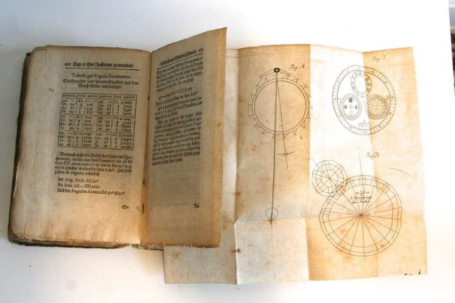 IMPORTANCE: When evaluating an old book, and once it has been identified, it is necessary first to get a sense of its importance. Some books are rare, but not necessarily important and therefore not very valuable. The book here is important. A little research indicates that it is considered to be the “The first detailed treatise on clocks and watches.” (Baillie, Clocks and Watches, p.147). Book dealers are often fond of books that can be labeled “the first of this” of the “first of that”, and while they sometimes go to extremes to elevate a particular book’s importance with such descriptive labels for the purpose of marketing, this is truly a breakthrough work in horology. It is particularly fascinating, as while some other earlier works had touched upon clock mechanisms, Leutmann delves into the relatively newer area of pocket watches and portable time pieces, with a chapter even on how to tell the age of a watch (albeit that is not much use today if you like a glitzy Rolex or a more subdued vintage Patek Phillipe)