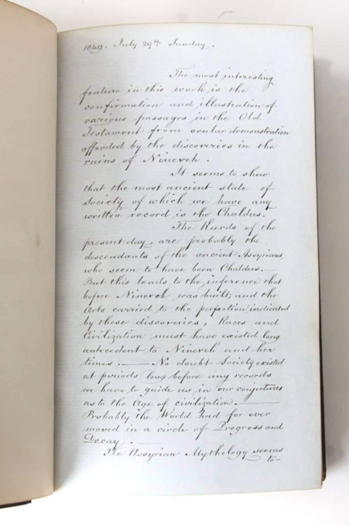 Additionally when we open the set further, we find bound in before the preliminary pages a 10 PAGE MANUSCRIPT IN BEAUFOY’S HAND commenting on the work and furnishing details of the famous Beaufoy library. When reading this manuscript, it is mentioned that Layard (the author) was a family friend